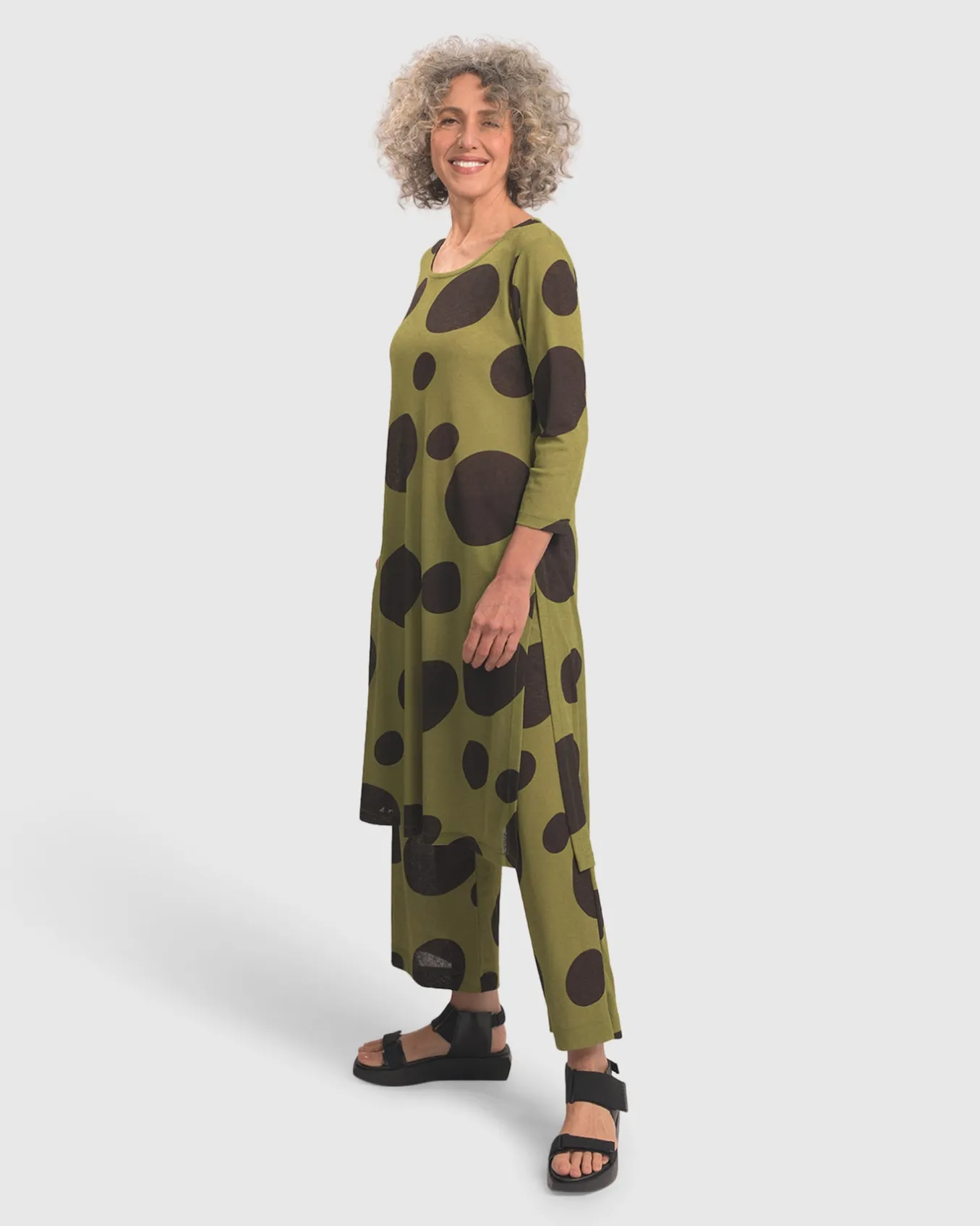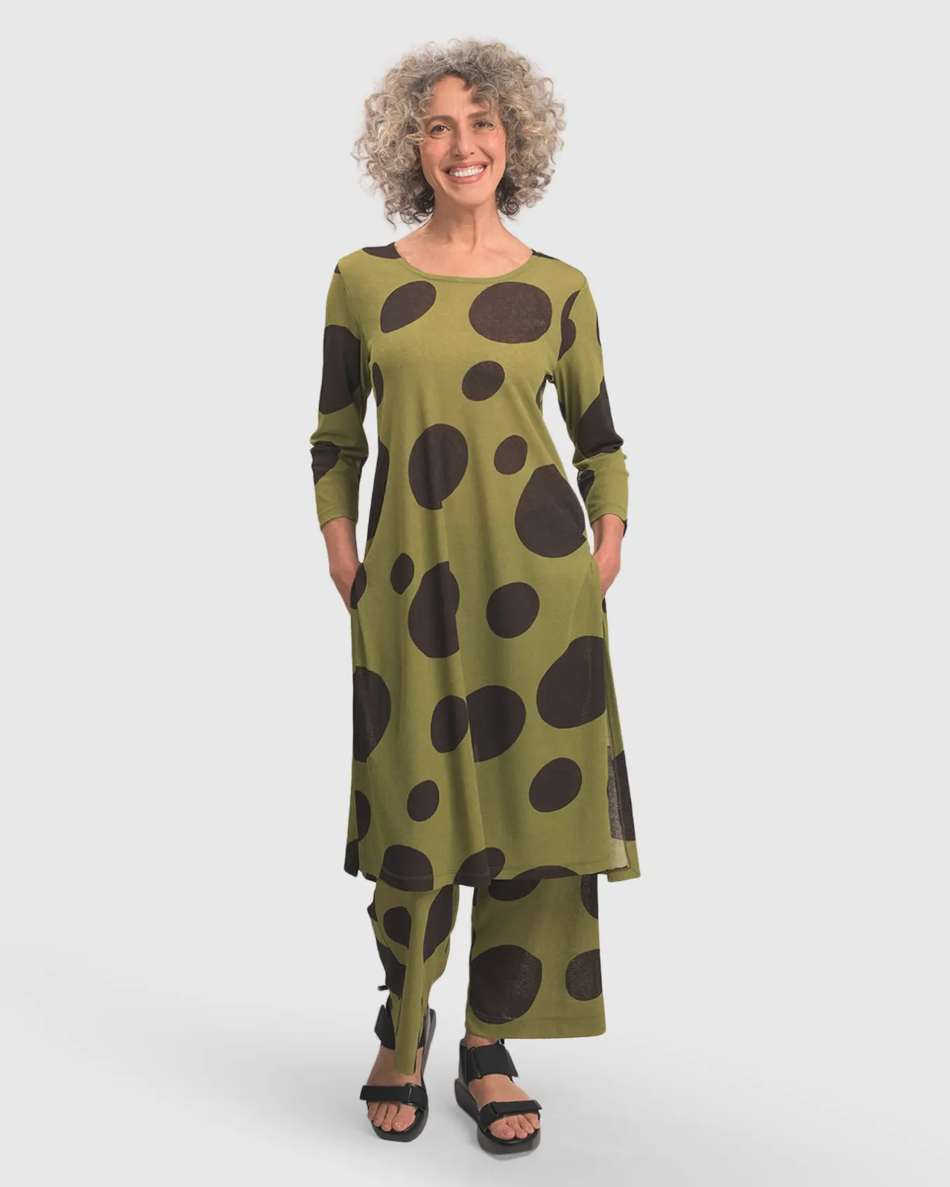 We Love A Dress-Length Tunic! This Fab Layering Piece Is Rendered In The Softest Jersey And An Updated Dot. Scoop-Neck Pullover With Long Sleeves, Slight A-Line Silhouette And Deep Side Slits For Graceful Movement On The Go!