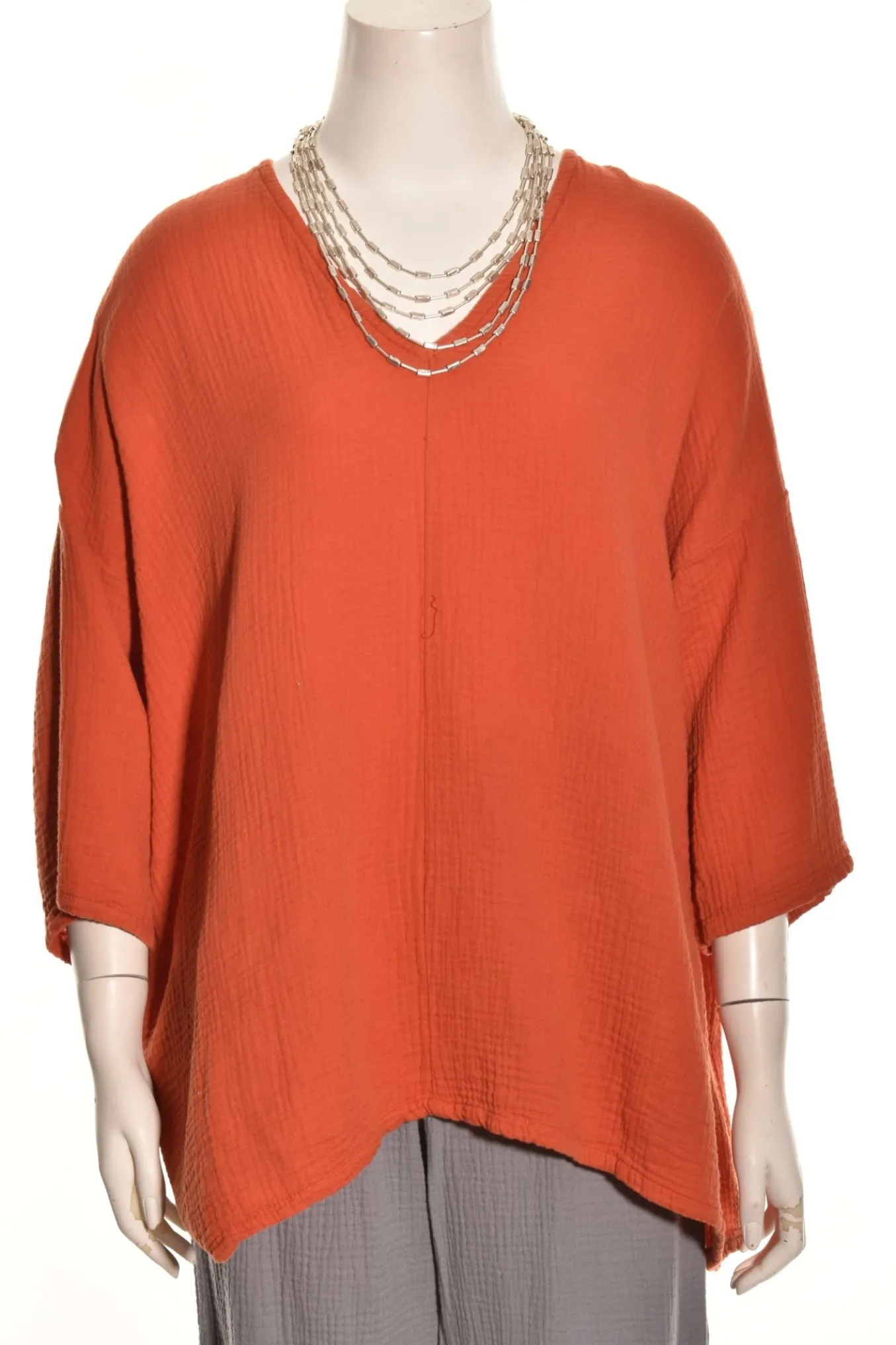 The Baxter Tunic By Bryn Walker Is Made Up In Lightweight Linen For A Breezy And Cool Look That Will Easily Style With You Existing Wardrobe. The Short Sleeve V-Neck Top Has A Ceter Seam Front And Back And A Hemline That Falls Slightly Longer In Back And The Sides. We Paired Her With Bryn Walkers Casbah Pant, Style #7024, In Color Quill.