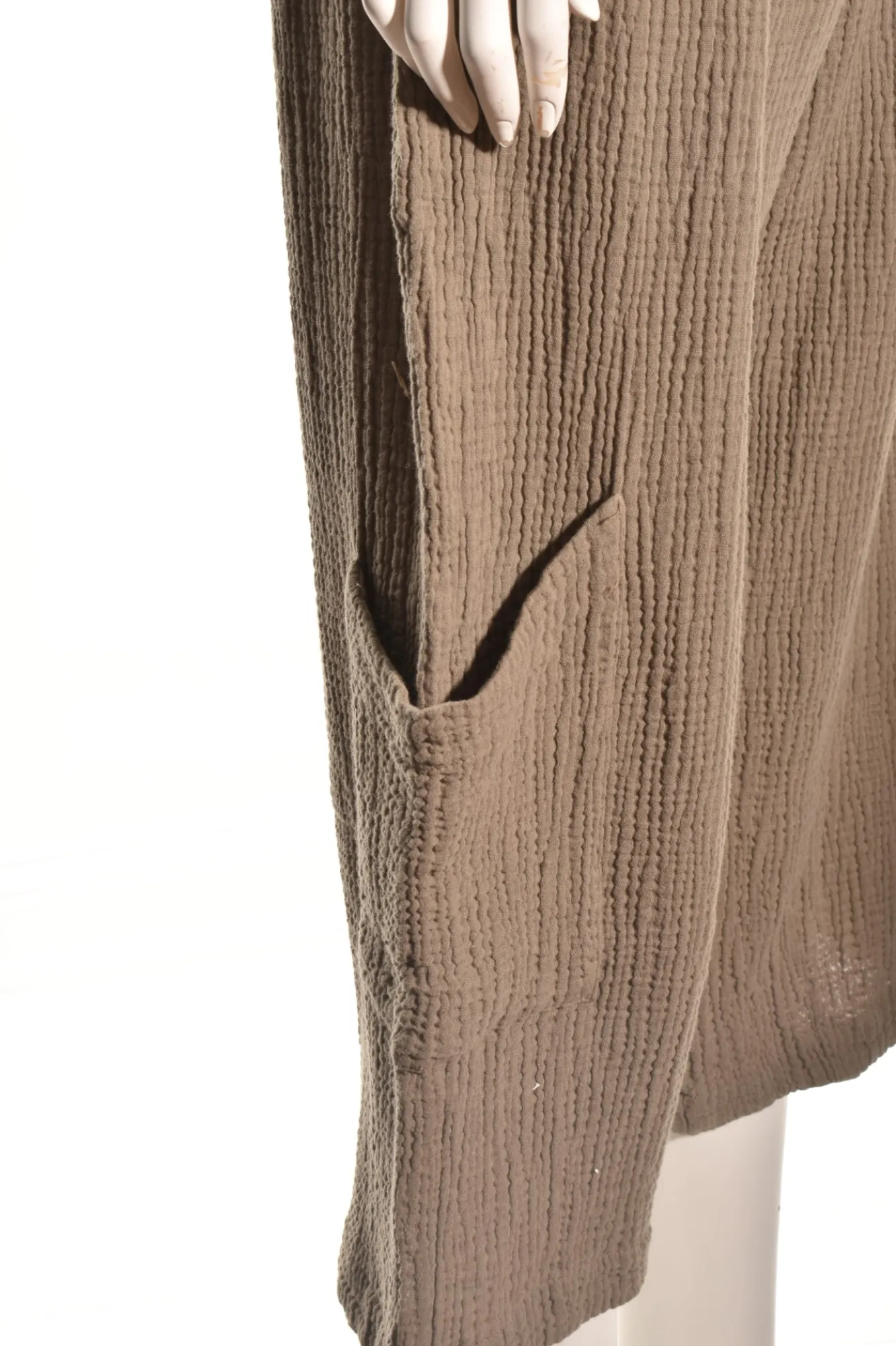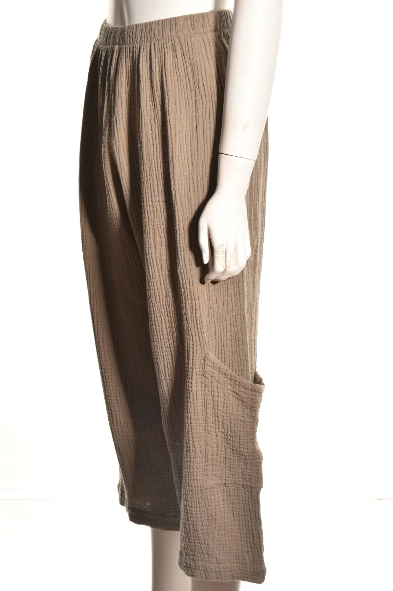 This Comfy Pant In 100% Cotton Gauze Features A Full Stretch Waistband.Wide Cropped Legs With Pockets Just Above The Darted Ankles.