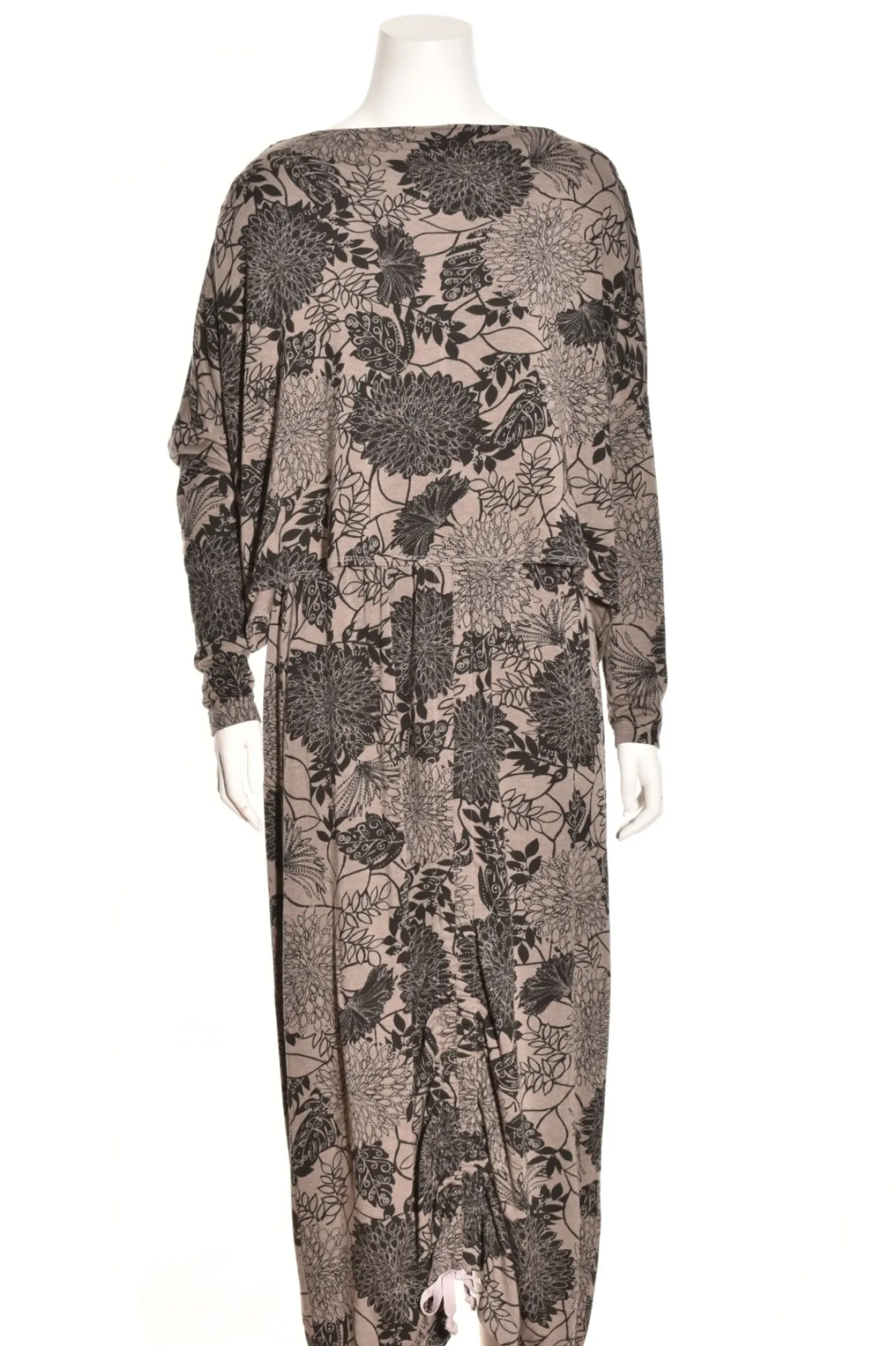 The Cleo Skirt, Is A Maxi Length Skirt Made Up Of Mid Weight, Soft Heathered French Terry Fabric With A Chic Botanical Print In Nightingale And Black. The Skirt Has A Comfortable, Relaxed Fit With A Flat Waistband And A Drawstring On The Front Side Running From Top To Hemline To Ruche Or Lay Flat For An Ever Changing Look.