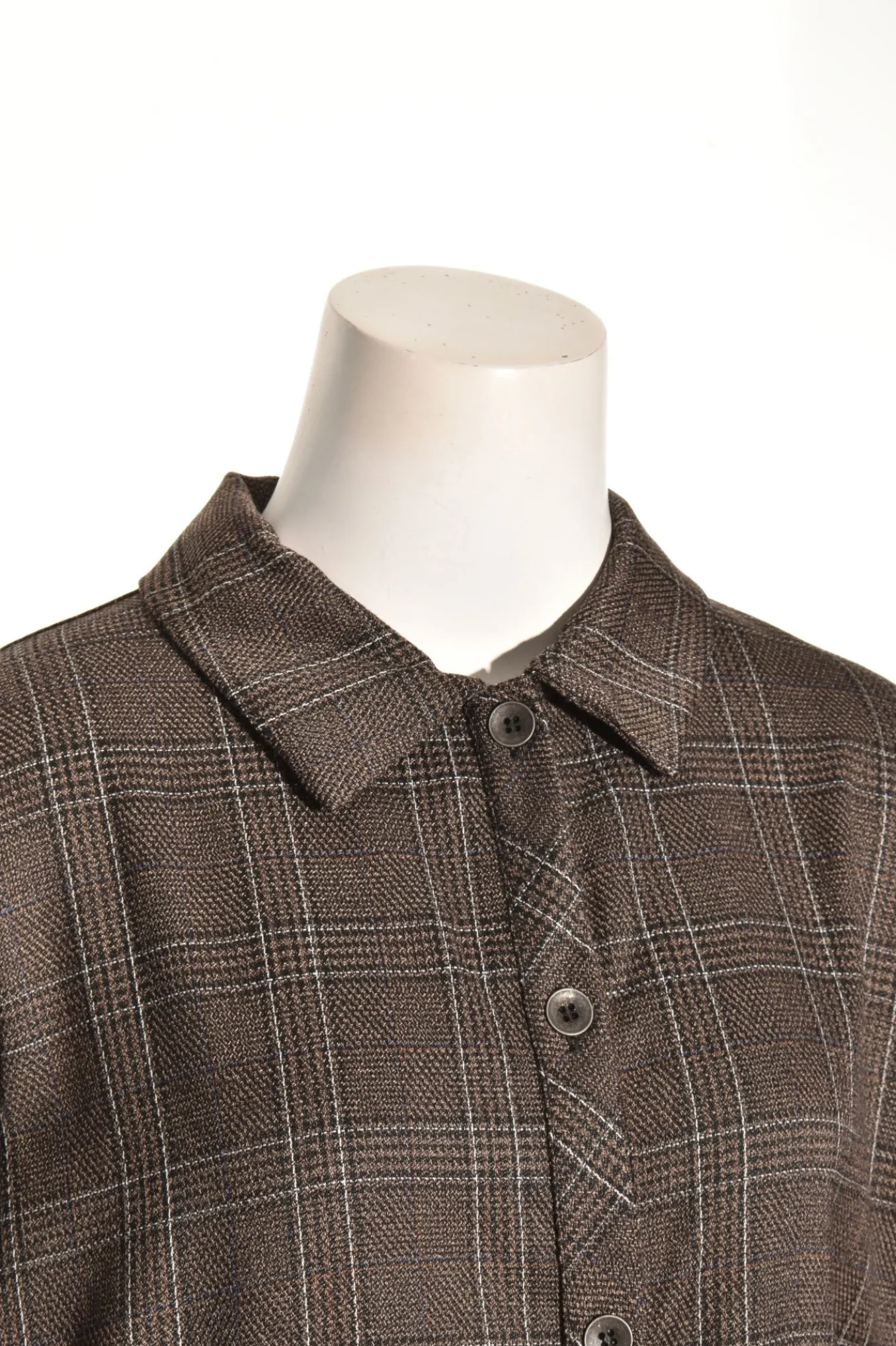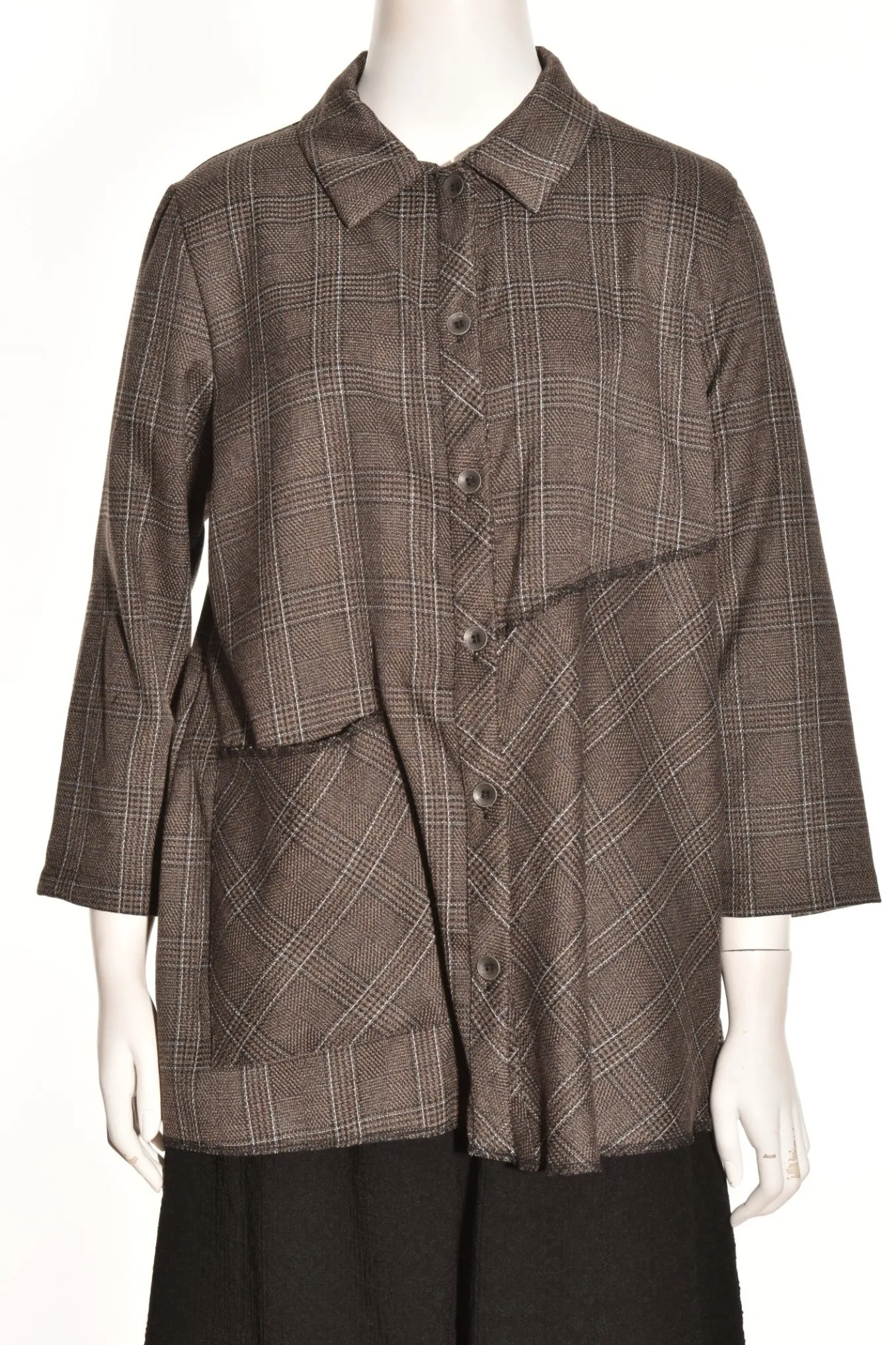 A Blast To The Past Mixes With A Modern Vibe With This Plaid Shirt. A Straight Silhouette With A Full Button Front, Pointed Collar And 3/4 Length Sleeves. A Large Patch Pocket On The Right, A Reverse Raw Edge Seam Adds Updated Details To The Vintage Feel. Another Raw Edge Seam Runs Across The Back And A Pleat Gives Shape.