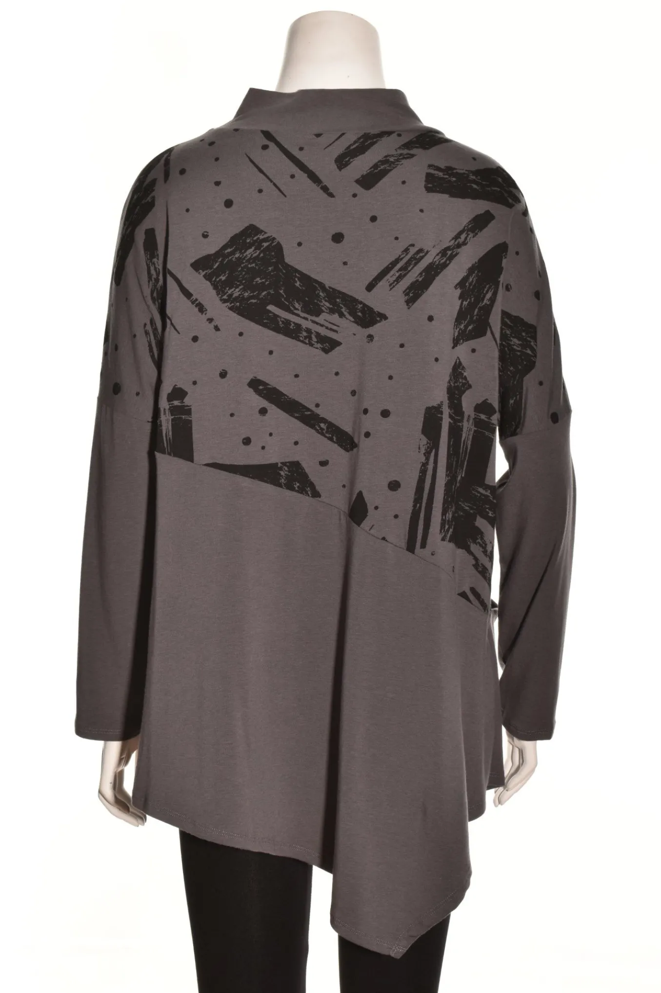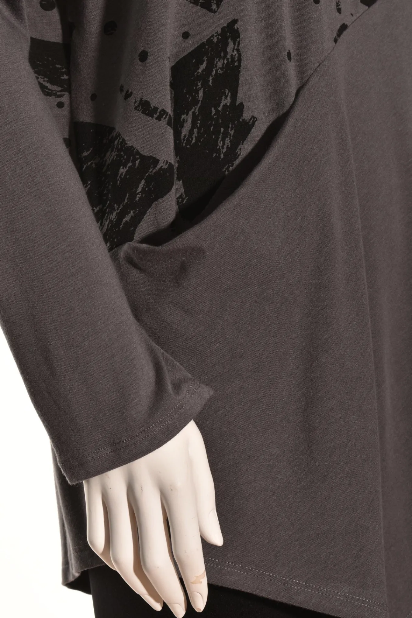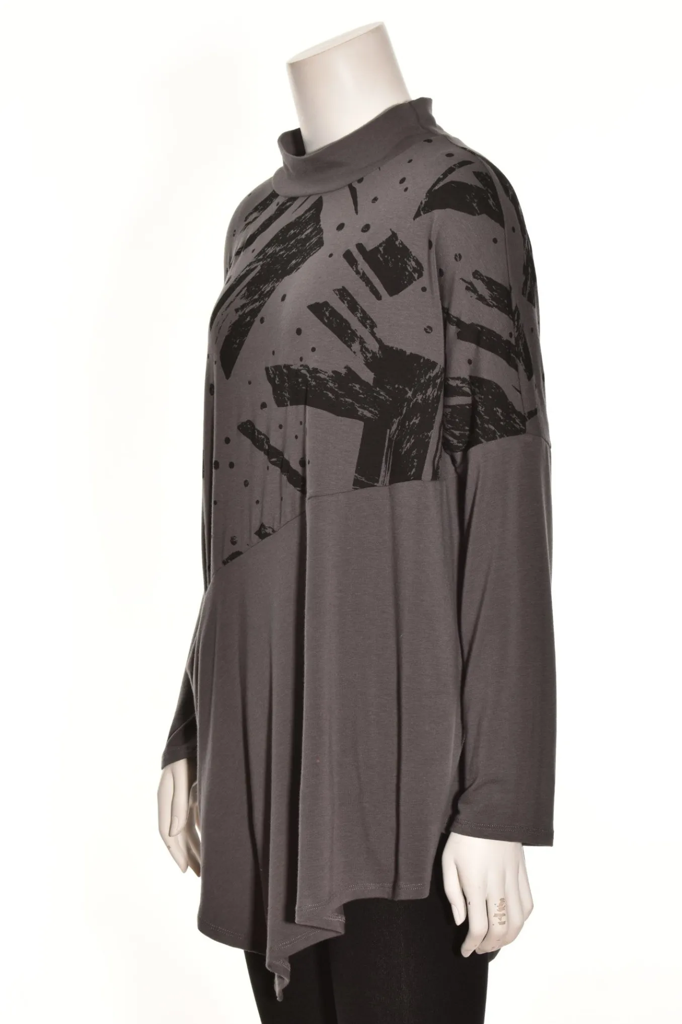 The Presley Tunic Is A Funky Tunic That Will Be Your-Go To!! Made Up Of Soft Bamboo Cotton, This Tunic Features A Loose Mock Neck, An A-Line Silhouette And Full Length Sleeves. The Diagonal Seaming Sets Off The Contrast Of Print To Solid Fabrics And Carries A Front Slouch Pocket That Is Hidden By The Angled Seam.