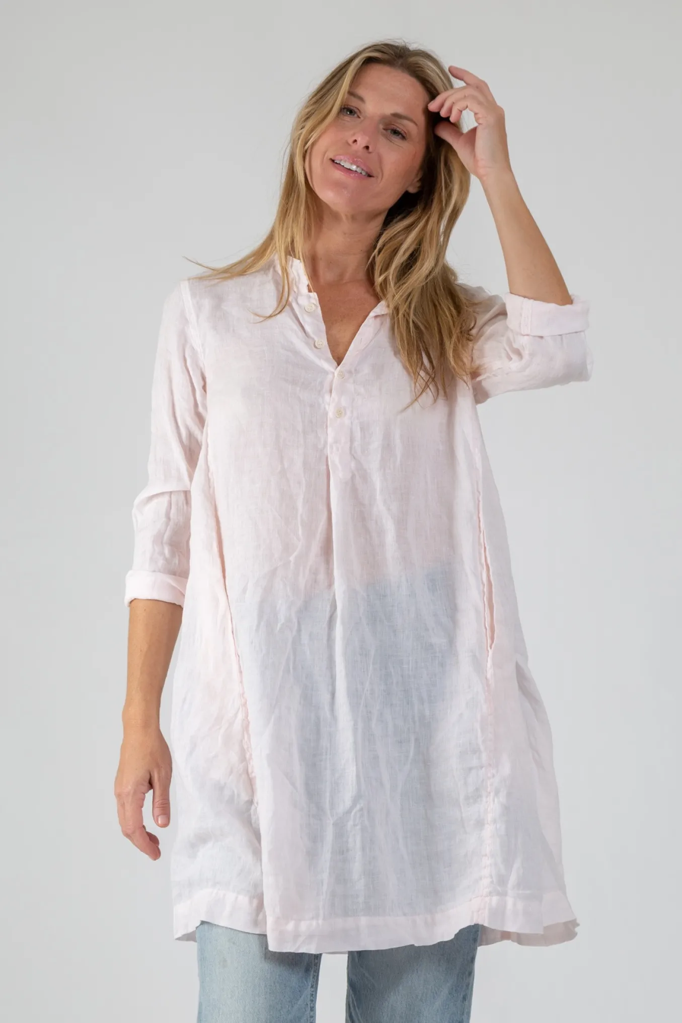 The Jasmine Has A Relaxed A-Line Silhouette That Hits Most Mid-Thigh To Knee, Details Include A Mandarine Collar, Buttoned Half Placket And Front Slant Pockets. This Tunic/Dress Will Get Plenty Of Milage In Your Wardrobe, Wear It As A Tunic With Leggings Or Palazzos, A Dress Or Even As A Beach Cover-Up, Looking Good With Rolled Up Sleeves.