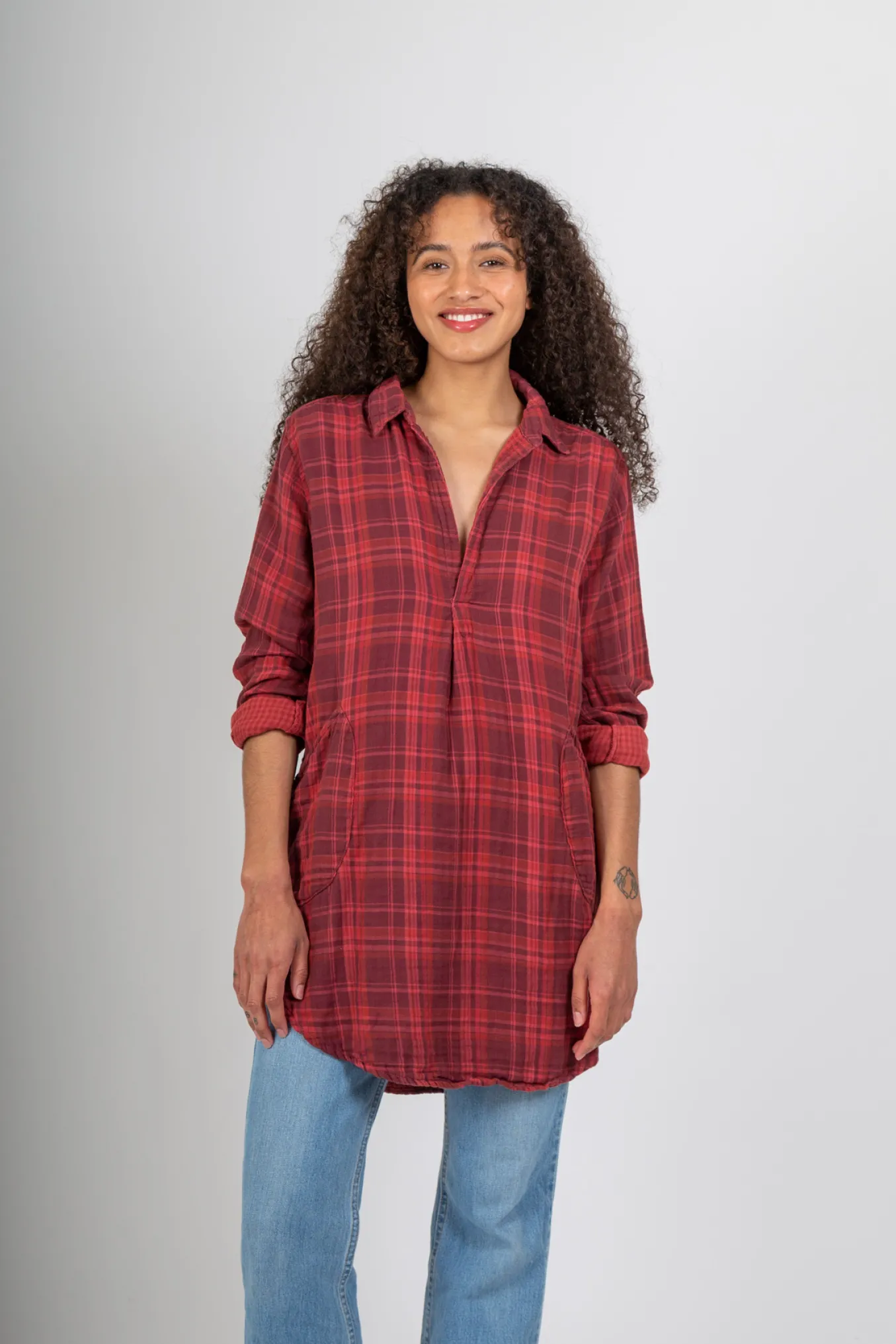 Cool And Carefree, Our Easy Pullover Tunic Floats Gracefully On, Revealing A Deep V-Neckline, Patch Pockets, And A Curved Shirttail Hem.