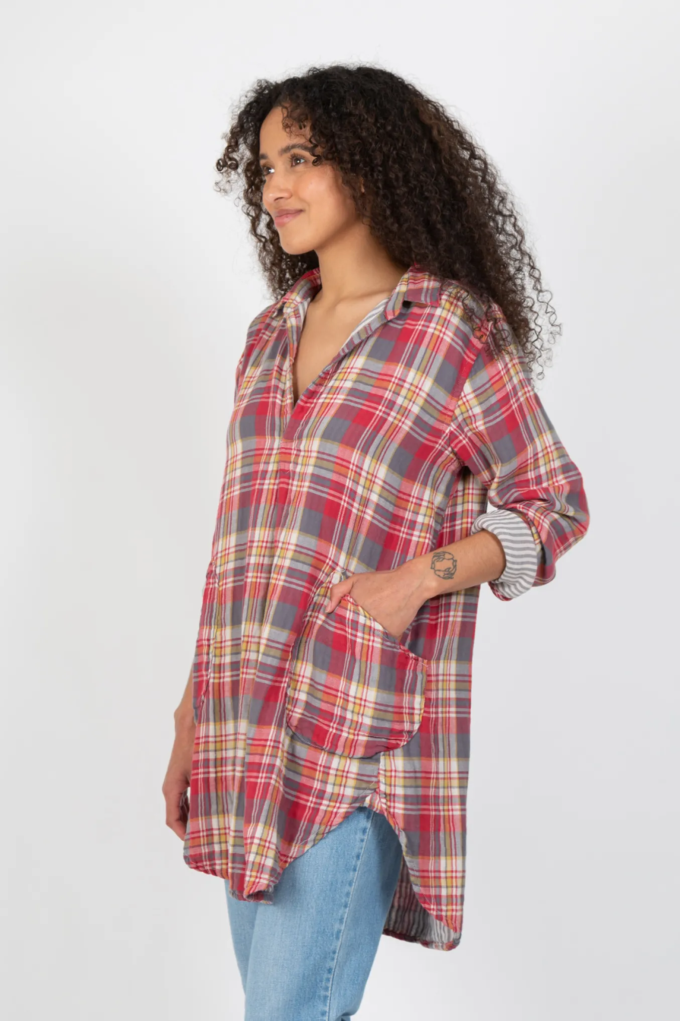 Cool And Carefree, Our Easy Pullover Tunic Floats Gracefully On, Revealing A Deep V-Neckline, Patch Pockets, And A Curved Shirttail Hem.
