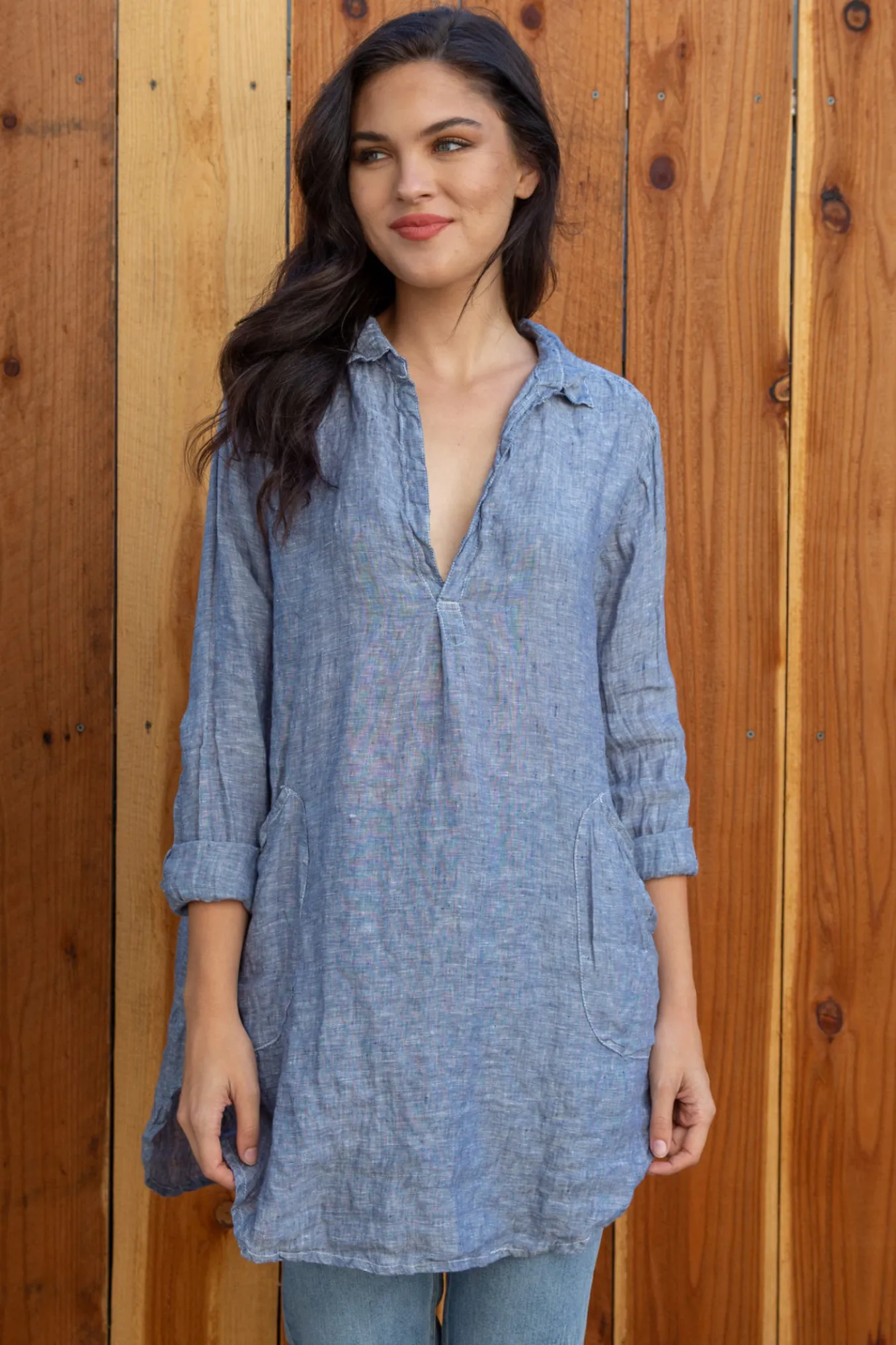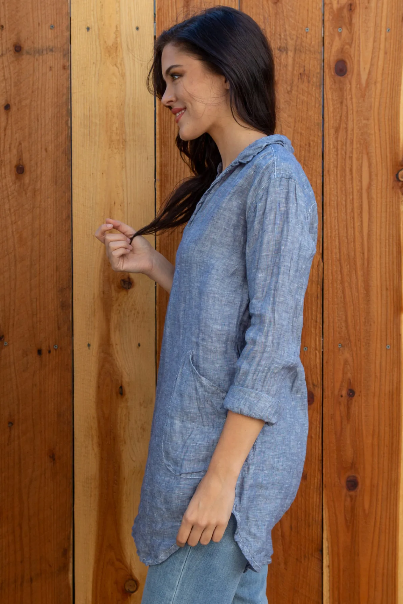 The Teton Tunic Top Is A Favorite In The Cp Shades Collection Appearing In Different Fabrics.Depending On The Season. The Teton Shines In Lightweight Airy Linen. This Tunic Flatters So Many With A Full Body Artist Smock Silhouette, Open Neckline With A Pointed Collar, Full Length Sleeves With Button Cuff, A Curved Hemline That Falls Slightly Longer In Back. The Curved Patch Pockets Are Practical And Add Yet Another Detail To This Forever Piece.