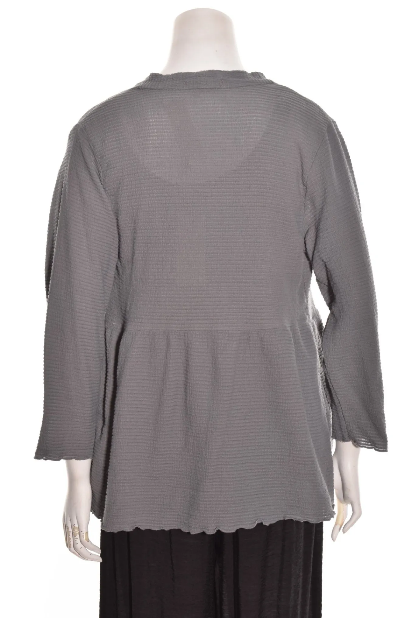 The Flounce Jacket By Cut Loose, Made Up In A Lightweight Cotton-Crepe Pucker Offers The Perfect Coverage For Warmer Weather. Details Include A Single Button Closure, 3/4 Length Sleeves, Side Seam Pockets And A Lettuce Edge Hemline. Pockets At The Side Seams For The Win.!