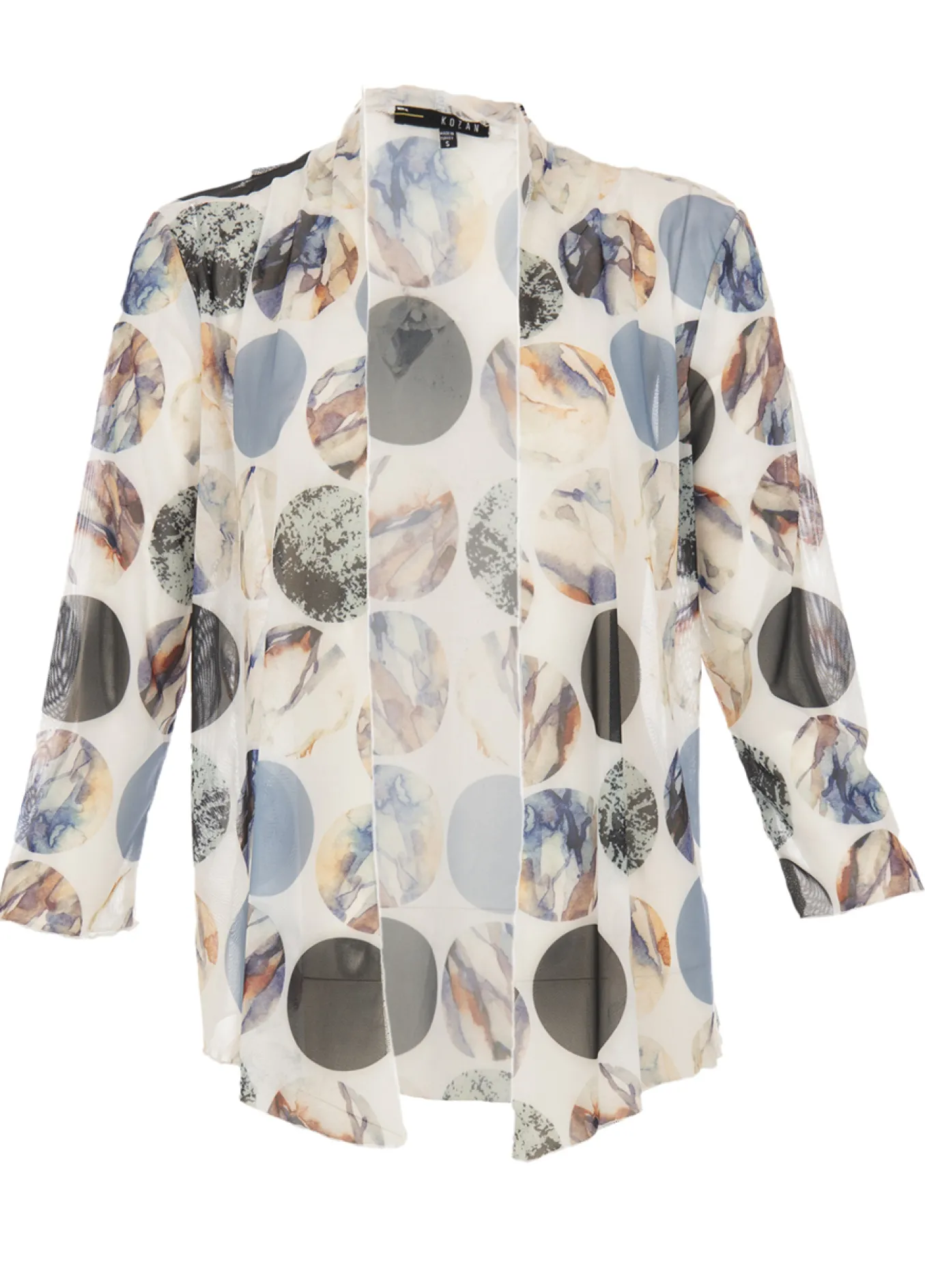 The Melanie Jacket By Kozan, Is A Beloved Style In A From A New Print From A New Season. This Open Front Jacket Is Made Up In A Sheer Mesh And Has A Delightful Print Called “Jupiter”. The Hemline Falls Slightly Longer In Front, The Sleeves Are 3/4 Length. She Pairs Perfectly Back To The Dulce Dress, Style, #Vg-15030 By Kozan, Also Made Up In The Same Print. The Dulce Dress And The Melanie Jacket Make An Ensemble That Is Worthy Of Any Special Occasion.