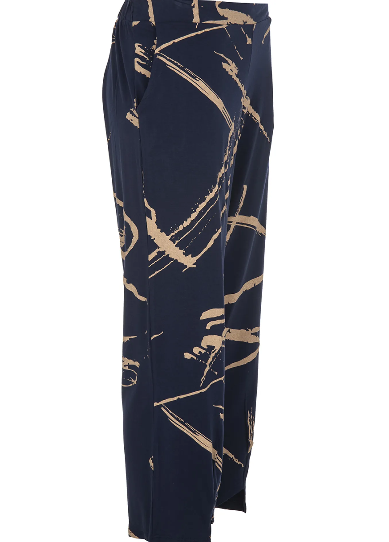 The Jemma Pant By Kozan Features A Straight Ankle Length Leg With A Pull-On Waistband That Flat In Front And Elastic In Back. Other Details Include Side Pockets And A Small Slit And Tuck At The Hemline. She’s Seasonless And A Great Essential For Your Wardrobe, In A Contemporary Print. Pair Her Back To Style Ts-4145, The Juliette In Navy.