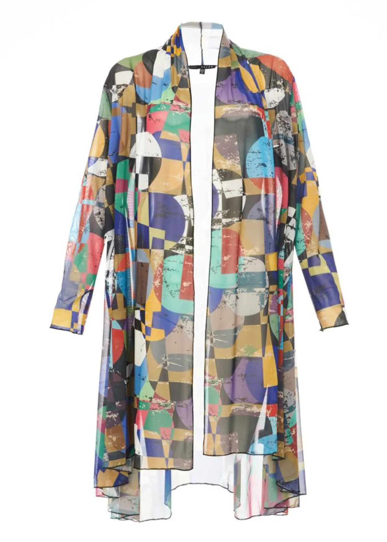 The Molly Cardigan By Kozan Has A Free Flowing Drape. This Seasonless Travel Friendly Sheer Mesh Cardigan Falls Mid Calf On Most, With An Open Front And Full Length Sleeves. Triangular Insets At The Sides Lend A Graceful Sweeping Motion To The Hemline. Made Up In A Vibrant Modern Print, Perfect For Pairing With Your Existing Wardrobe.