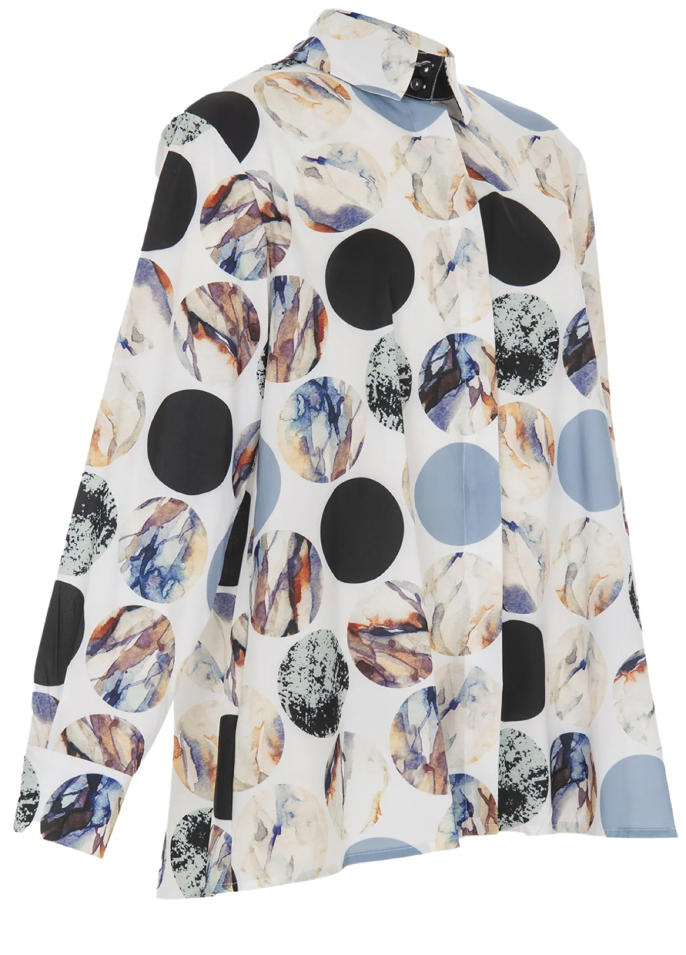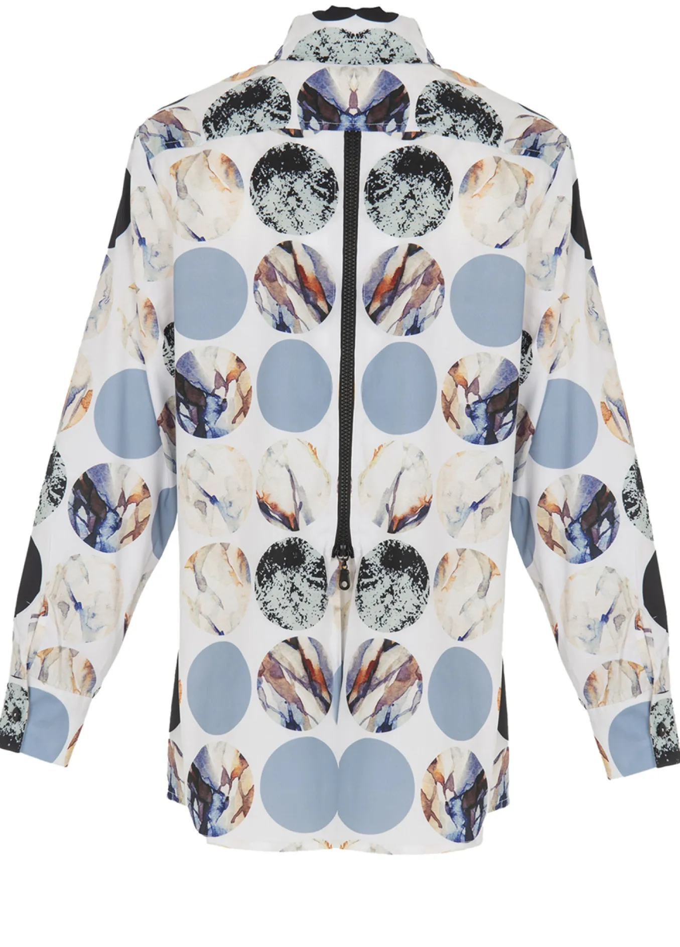 The Phoebe Shirt By Kozan, Is A Chic And Artsy Button Down Shirt With A Hidden Placket. Featuring A Figure Flattering Silouhette, Long Sleeves With Button Cuffs And A Classic Pointed Collar. A Working Zipper At The Back Adds Modern Sophisication. Made Up In A New Print For A New Season. Wear Her Back To Jeans For A Casual Look Or Pair Her With, Style #3921 The Jemma Pant For A Fun Ensemble.