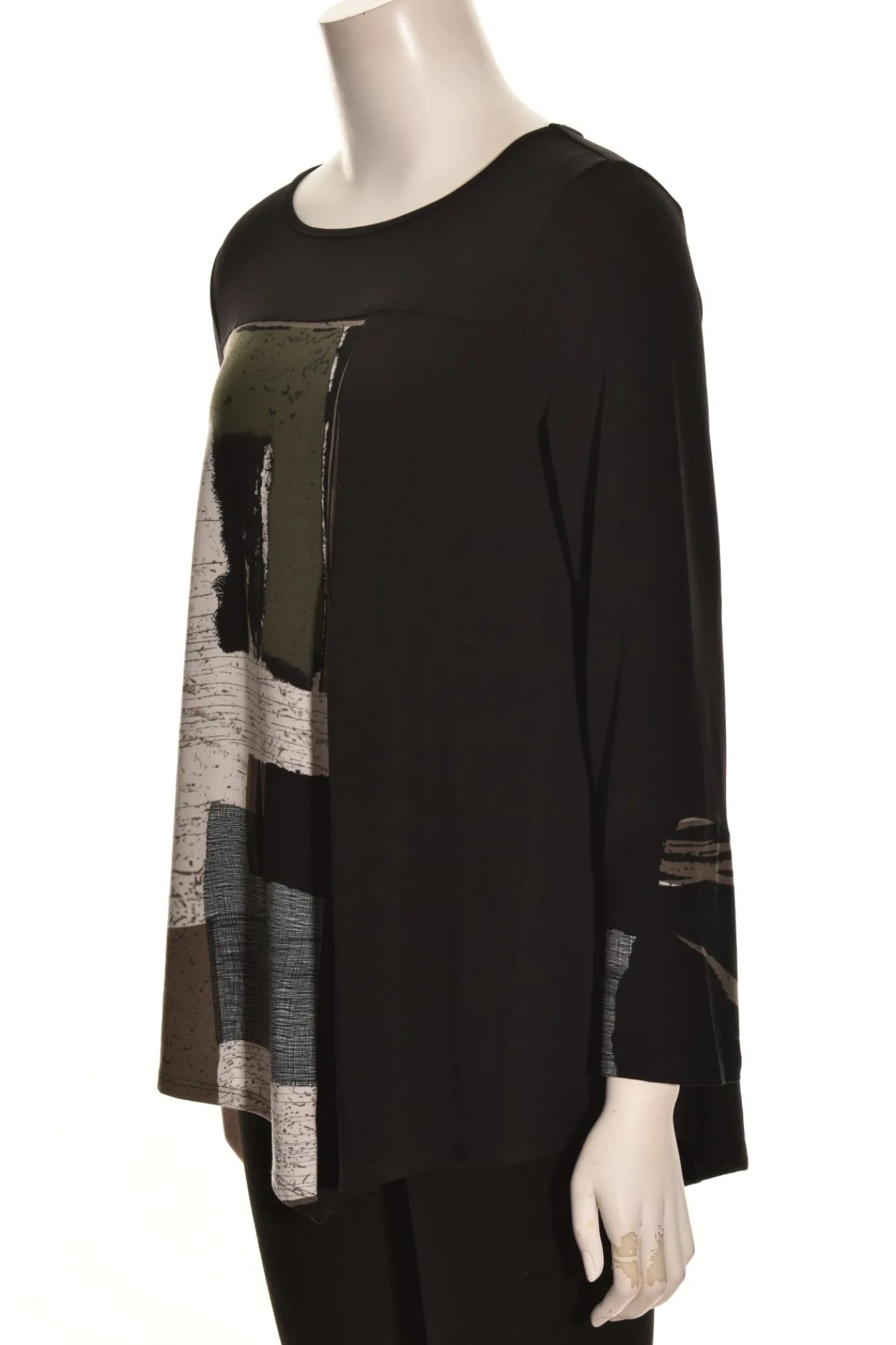 Created In A Silky Soft Jersey Knit, The Soho Tyler Teefeatures A Round Neckline, Banded Sleeves And A Color Block Pattern Front And Back. The Asymmetrical Hemline Creates An Artsy Vibe.