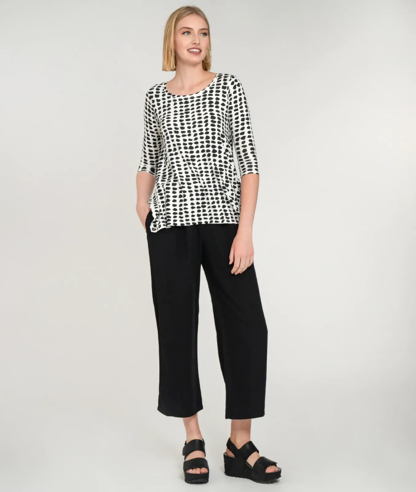 Our Popular Take On The Easy Tee-Shirt. Round Neckline, 3/4 Length Sleeves And A Swingy A-Line Silhouette In Drapy Jersey Clipped Sides Create A Draped Double Point Hem.