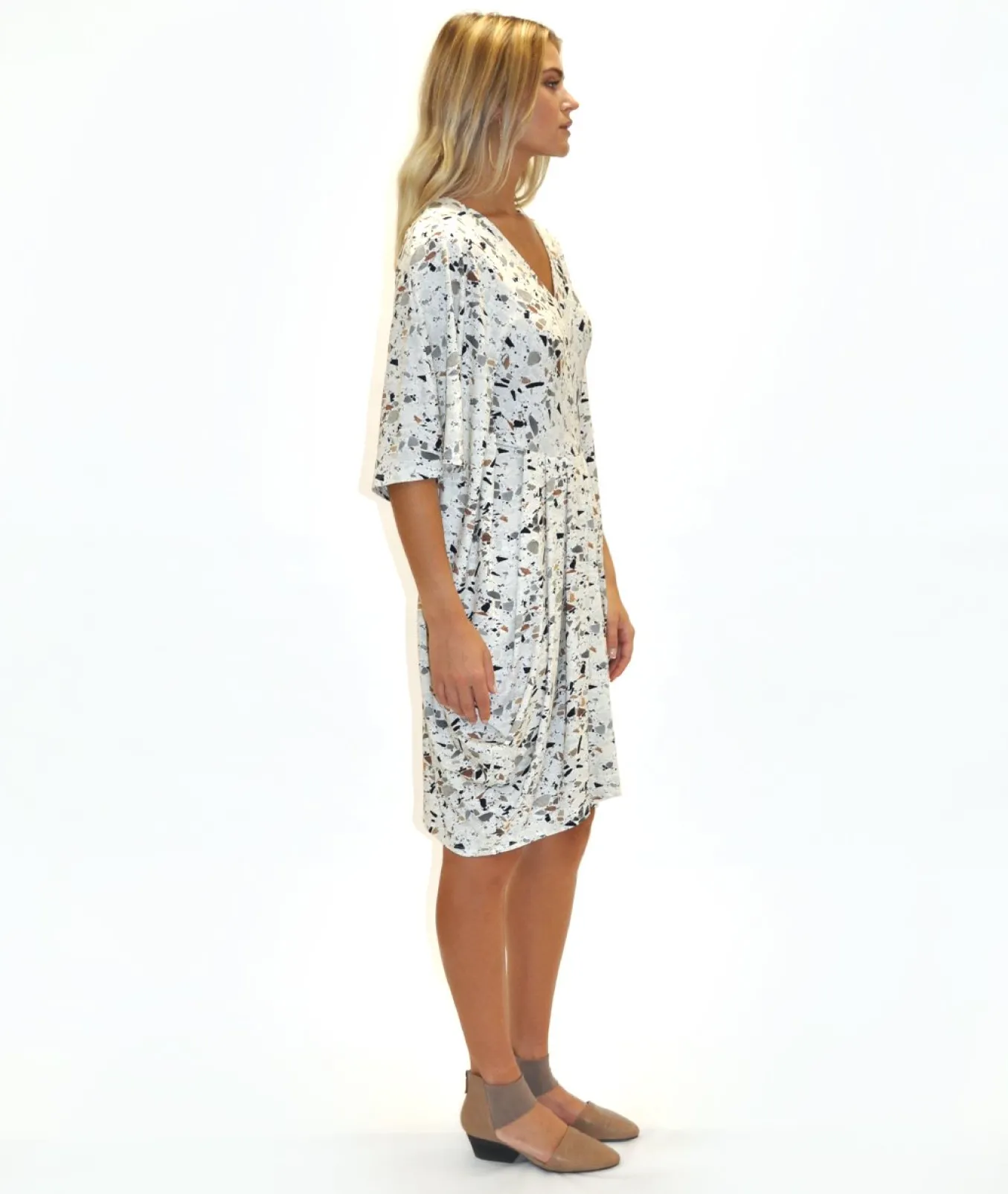 Kaftan-Style Dress With V-Neck And Bat-Wing Sleeves. Waist Seam With Pleats In Front And Back Creates A Silhouette That Is Both Relaxed And Shapely.