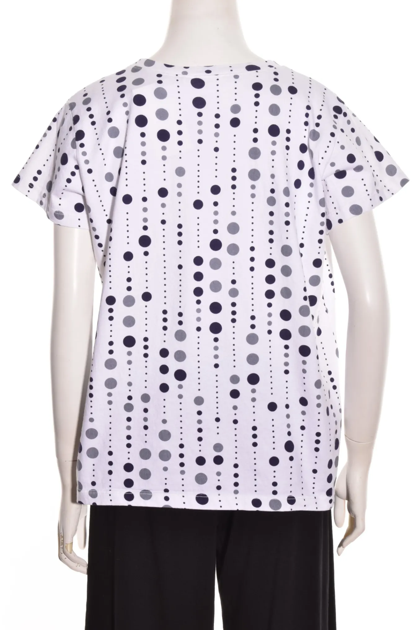 This Crew Neck Tee Is An Essential Featuring A Relaxed Fit With Short Sleeves. It’s Elevated In A Whimsikle Dot Pattern.
