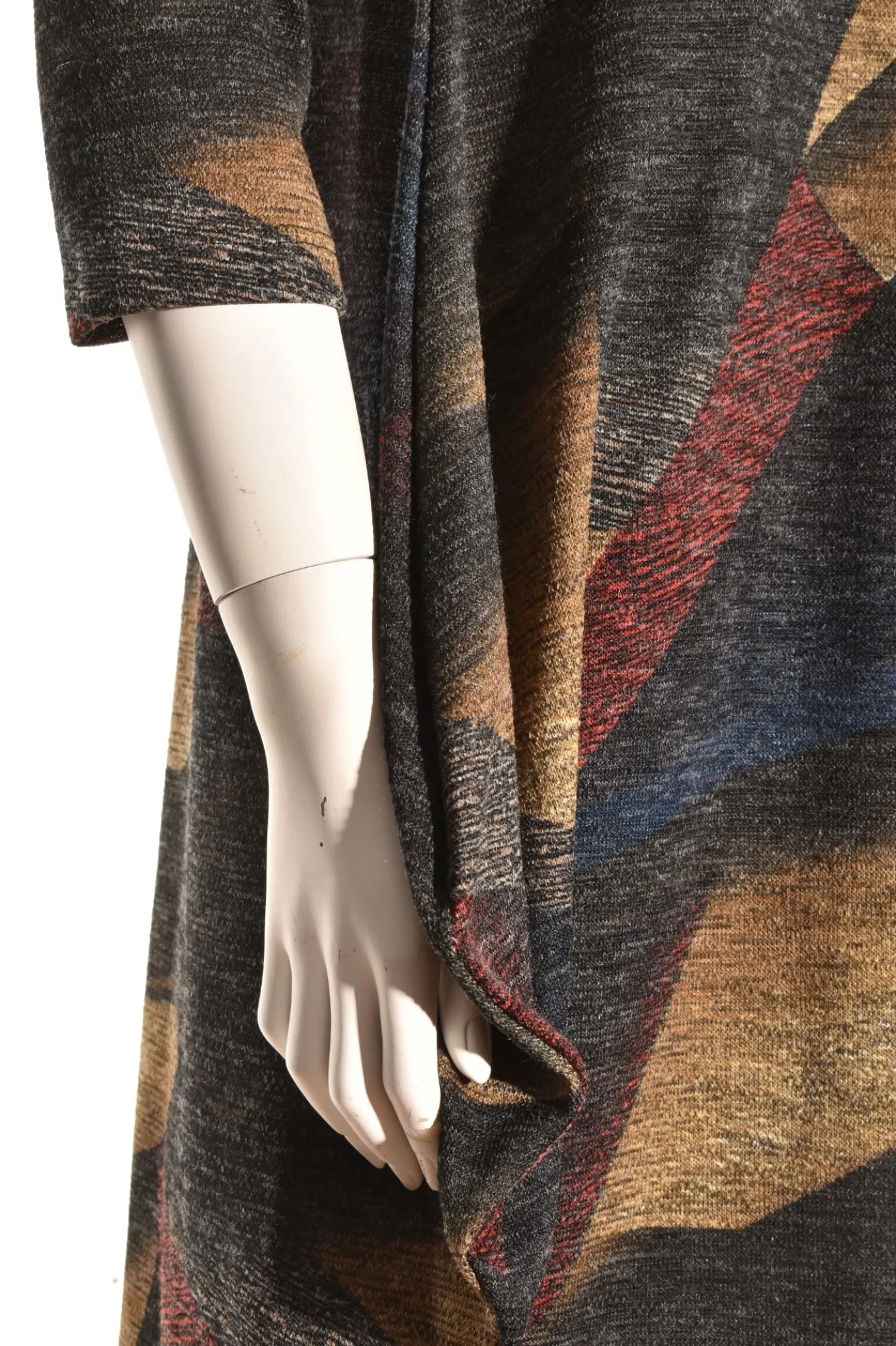 This Longer Length Tunic Dress In A Bold Geometric Print, Has A Flattering Cocoon Silhouette With Dramatic Side Slouching At The Hips For Gentle Shaping. Details Include A Scoop Neck And Three Quarter Length Sleeves. Pair With Leggings For A Casual, Together Look While Staying Comfortable And Cozy.