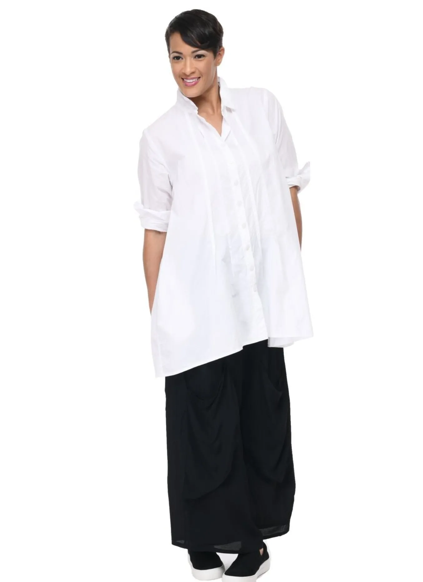 The Latte, Saunter Into Summer With The Latte Shirt By Tulip. Featuring The Classic Details Of Your Favorite White Cotton Blouse With A Pointed Collar, Full Button Front And Button Cuff Sleeves. She Delivers A Figure Flattering Shirt With A Flattering Swing To The Hemline, Hidden Side Pockets And Pleated Detailing In The Front And Below The Shoulder In Back.